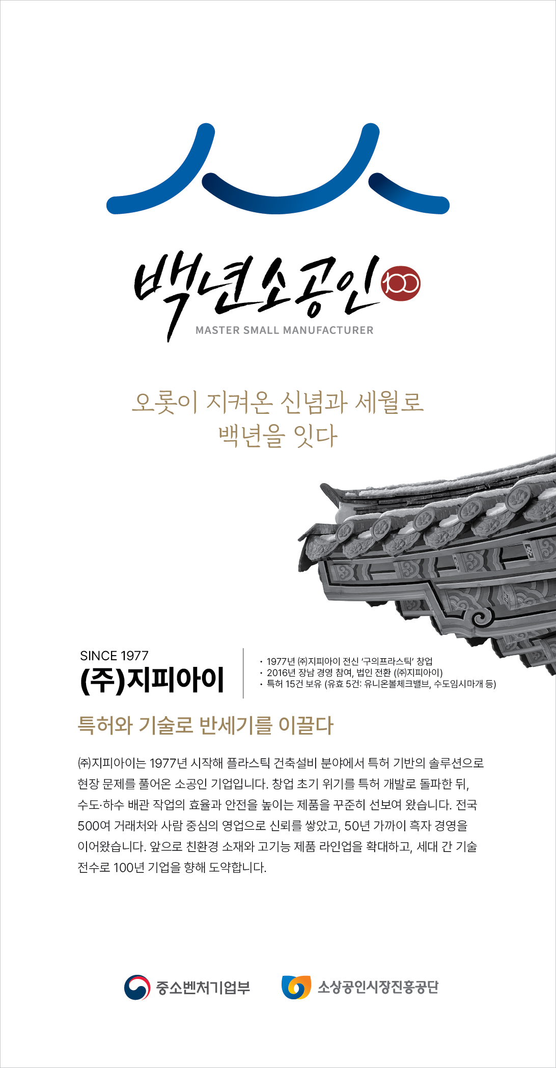 (주) 지피아이는  국내최초 플라스틱 수도임시마개를